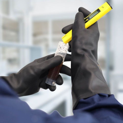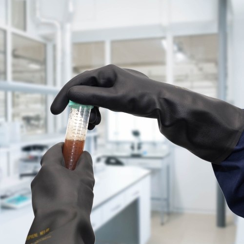 Kemskyddshandske speciellt anpassad för industribruk i neoprengummi. Utmärkt slitstyrka och kemikalieresistens mot de flesta lösningsmedel, mildare syror, oljor och fetter. Bomullsflossad insida för hög komfort. Godkänd för livsmedelshantering.