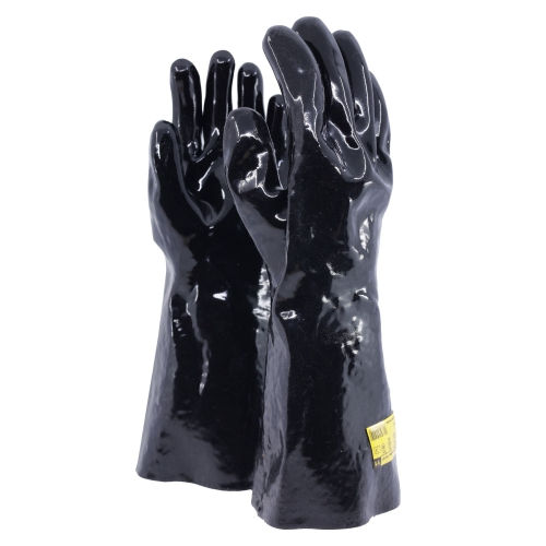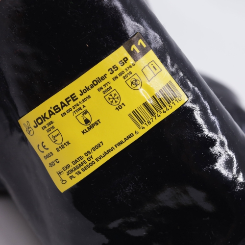 Jokasafe JokaOiler 35SP är en flexibel kemikaliebeständig vinylbelagd handske med långt skaft och tunt bomullsfoder.