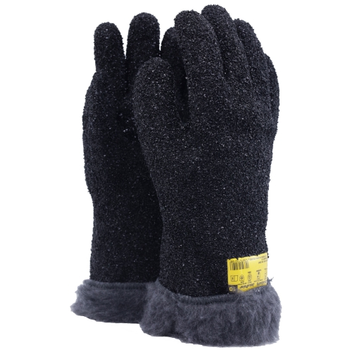 En slitstark trippel Vinyl 360° beläggning som förblir flexibel ner till -50°C. Den granulerade TopGrip®-ytan ger ett fast grepp så väl under torra, fuktiga som oljiga förhållanden. Handsken har ett löstagbart foder av konstgjord päls.