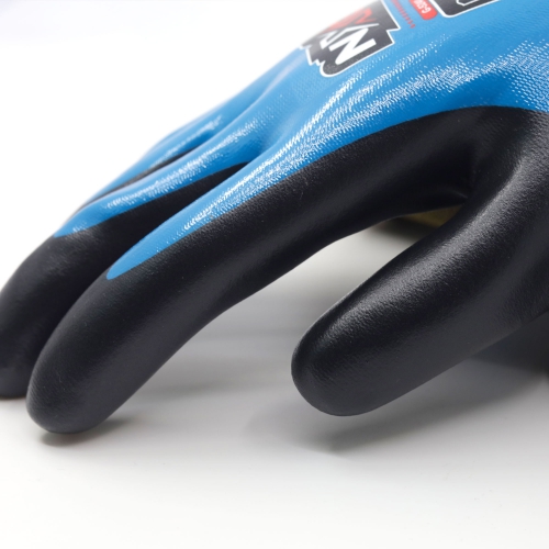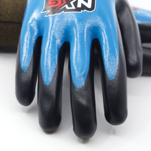 Stickad vattentät handske i nylon med överlägsen passform och extremt hög komfort. Dubbla lager nitrilbeläggning gör handsken vattentät med mycket god oljeresistens. Butadienfri. Yttersta lagret i foamad nitril som ger ett bra grepp i såväl torra som våta och oljiga förhållande. Ergonomisk design som minskar handtrötthet och ger en bekvämare handske.