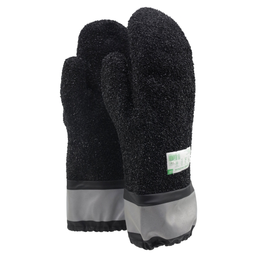 En slitstark trippel Vinyl 360° beläggning som förblir flexibel ner till -50°C. Den granulerade TopGrip®-ytan ger ett fast grepp så väl under torra, fuktiga som oljiga förhållanden. Handsken har ett löstagbart foder av konstgjord päls. Även utrustad med snö och vindlås med bred reflex.
