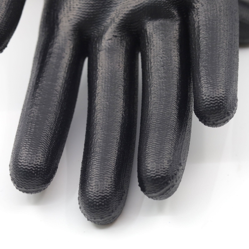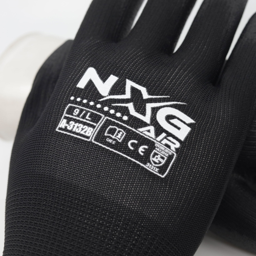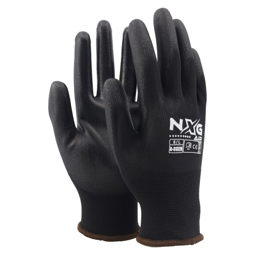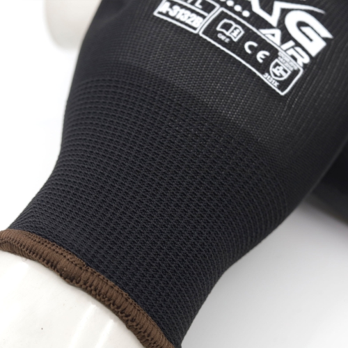 Tunn och extremt lätt stickad handske i svart polyester. Mycket bekväm även under längre perioder. Doppad i svart PU i innerhand och över fingertopparna. Beläggningen gör handsken slitstark och ger ett bra grepp. Butadienfri. Utmärkt fingertoppskänsla och är lämplig för precisionsarbete inom lätt industri och montering.