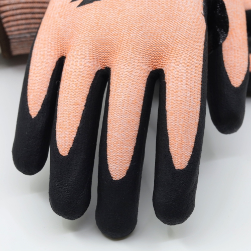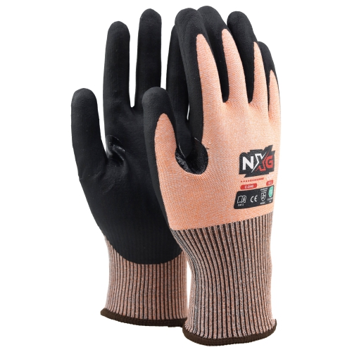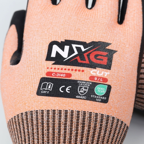 Stickad orange skärskyddshandske (Nivå C) i polyester/spandex och HPPE förstärkt med stål. Handsken är mycket smidig med fantastisk passform och bra fingertoppskänsla. Foamad svart nitril-beläggning som ger mycket bra grepp och bra oljeresistens. Touchscreen kompatibel så du kan använda telefonen utan att ta av handskarna. Med tumgreppsförstärkning. Butadienfri. Den ergonomiska utformningen på handsken gör handsken bekväm och minskar trötthet i händerna.