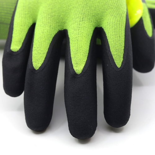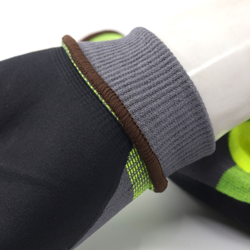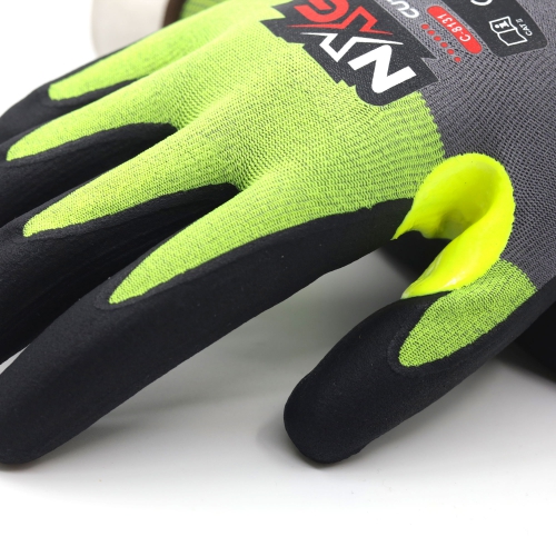 Stickad precisionshandske med skärskydd (Nivå C) i nylon/spandex och UHMWPE. Handsken är extremt tunn och smidig med fantastisk passform och exceptionell fingertoppskänsla. Foamad svart nitril-beläggning som ger mycket bra grepp och bra oljeresistens. Touchscreen kompatibel så du kan använda telefonen utan att ta av handskarna. Förstärkt tumgrepp ger ökad slitstyrka i utsatta områden. Butadienfri. Den ergonomiska utformningen på handsken gör handsken bekväm och minskar trötthet i händerna.